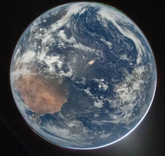 “This color image of Earth was taken by NASA’s Earth Polychromatic Imaging Camera (EPIC), a four megapixel CCD camera and telescope. The image was generated by combining three separate images to create a photographic-quality image. The camera takes a series of 10 images using different narrowband filters — from ultraviolet to near infrared — to produce a variety of science products. The red, green, and blue channel images are used in these color images.” – NASA (It’s CGI)