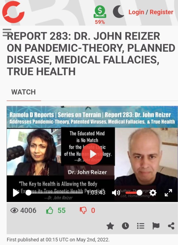 Dr. Reizer, I am unable to get this video. It goes to bitchute and then I have a cut off. I have tried many times and don’t know if it’s me or what? I will keep trying. I missed this the last time you posted it so would be interesting to see. Tks, Sandy