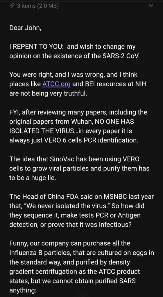 Before my life nearly ended in 2021 due to being targeted by the powers that be in response to my precision writing about the world psyop known as the COVID pandemic, I was on many panels with scientists and other doctors. I conversed with a plethora of colleagues and told them that the sars-cov-2 virus was not real. The alleged virus, I explained, had never been adequately isolated by any scientists anywhere in the world.