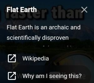 “Flat Earth is an archaic and scientifically disproven conception of the Earth’s shape as a plane or disk. Many ancient cultures subscribed to a flat-Earth cosmography, notably including the cosmology in the ancient Near East. The model has undergone a recent resurgence as a conspiracy theory.[1]”