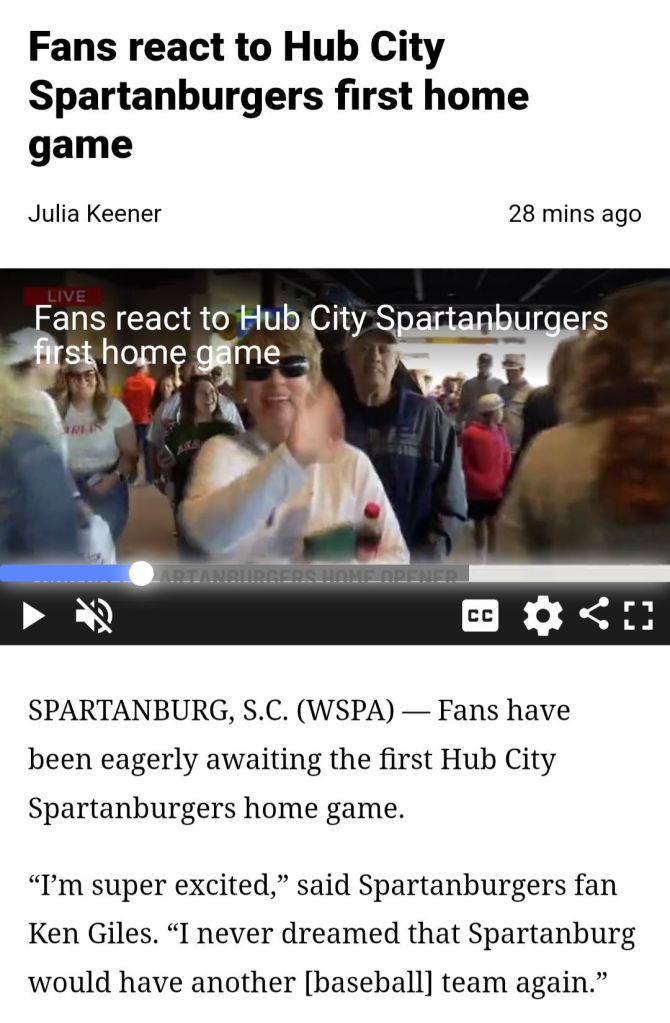 Spartanburg, SC — Major League Baseball returned to The Hub City on Tuesday night for the first time since 1994 when the Spartanburg Phillies’ minor league team played their last game in the Upstate of South Carolina.