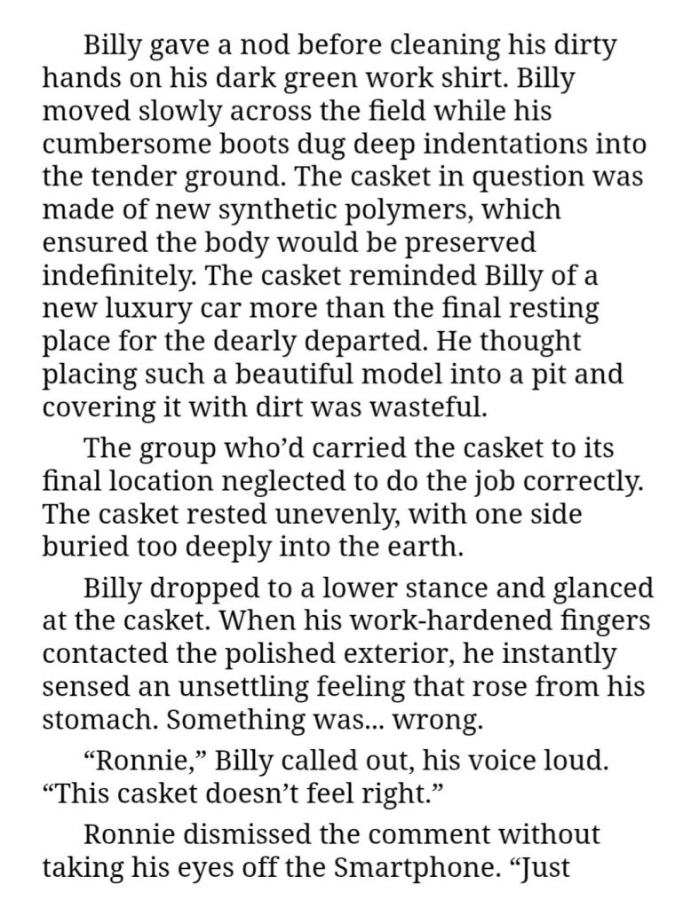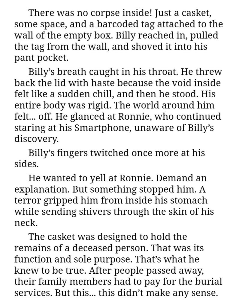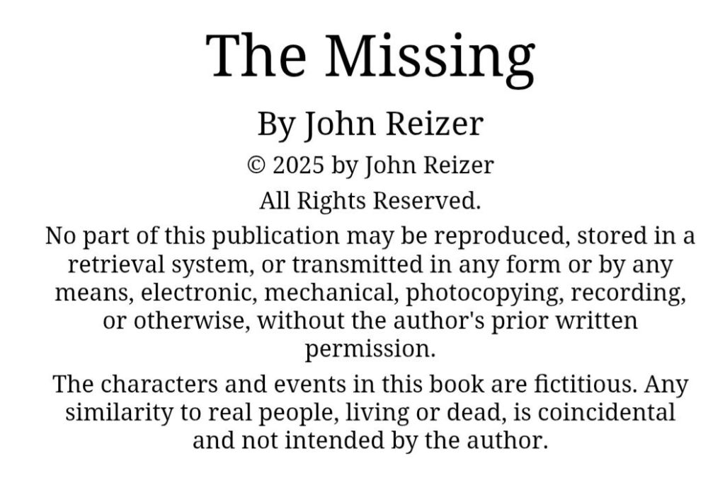 The Missing is a chilling tale about death and some other crazy things. It’s got a bit of a twist that’s going to bring things into complete focus at the end. I think the readers from this website will appreciate the underlying message of the novella after reading the whole story.