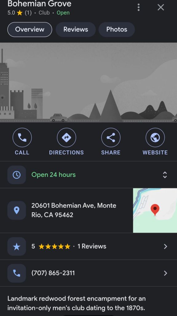 By the way, did you know that many people still believe there’s no Bohemian Grove? They think it’s just some crazy, made-up conspiracy theory.