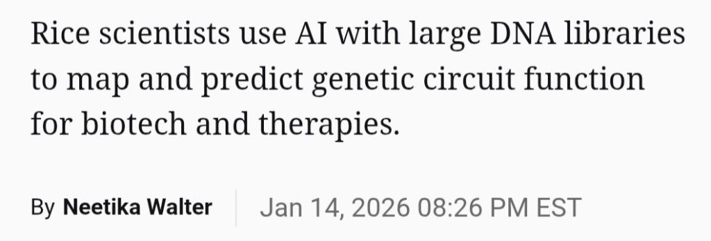 The article referenced above discusses how AI can now help map DNA sequences and predict biological circuit functions.