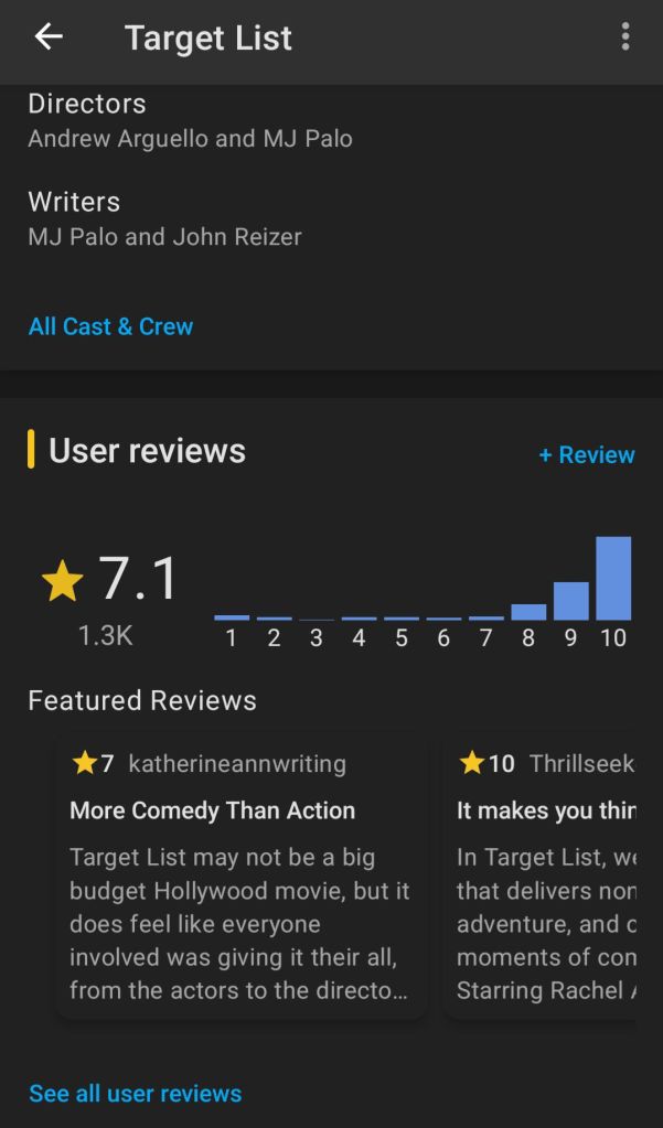As of this writing, Target List is rated 7.1/10 on the IMDb platform with 1,252 votes.