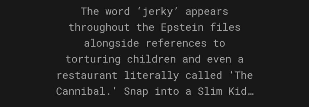 Epstein and many high-level wealthy elites he hobnobbed with were and still are into cannibalism, you know, the same highly influential types that are the captains of industry and controlling the corporations that directly own or monitor the companies processing foods distributed to people realm-wide.
