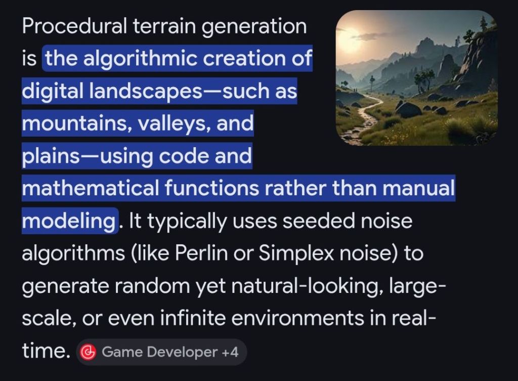 Do you know how a video game generates unending terrain? It’s known as Procedural Terrain Generation.