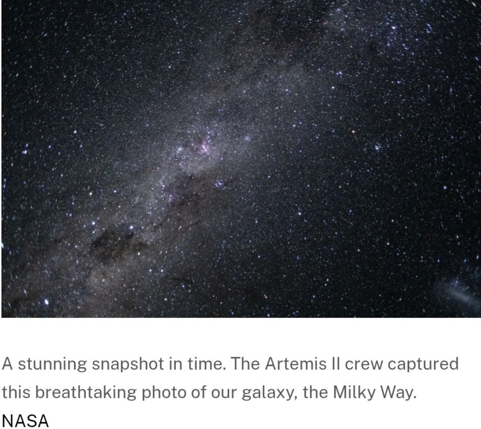 NASA hears my skepticism and immediately provides a breathtaking view of the Milky Way photographed by Artemis astronauts.