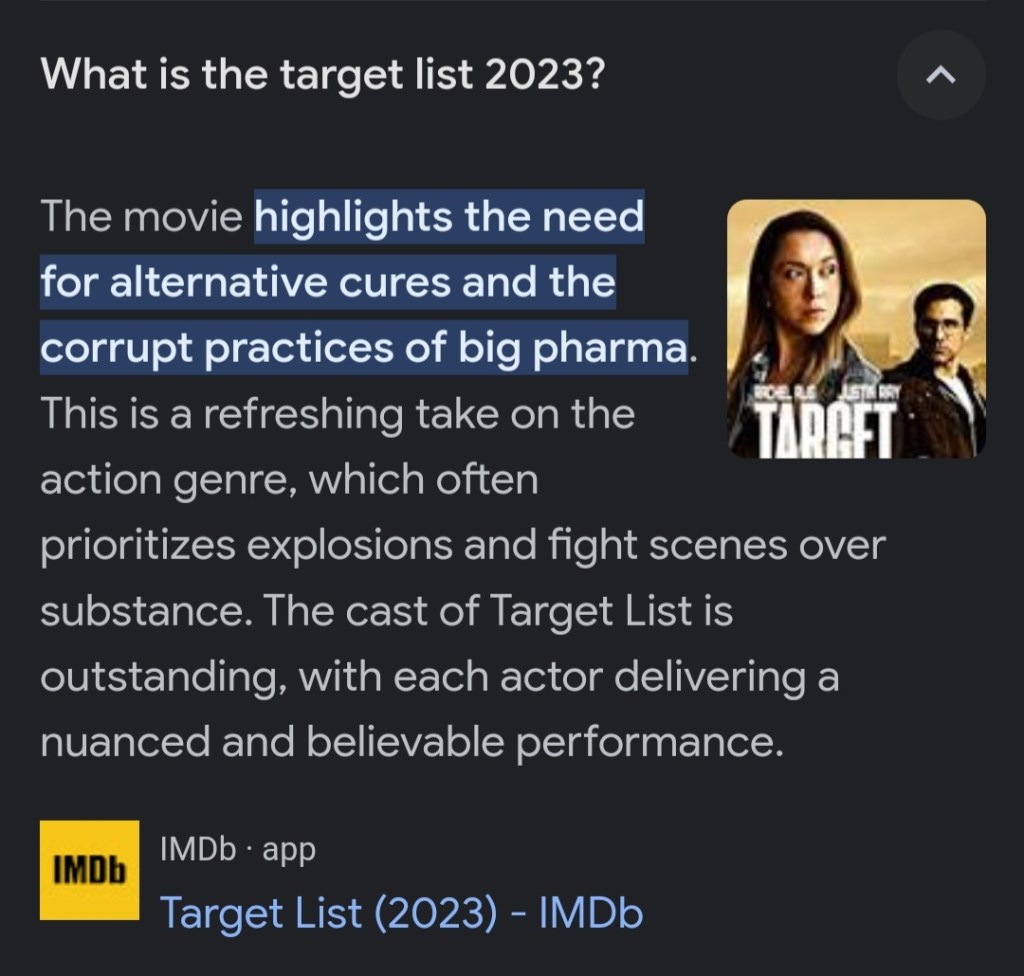 “Entertaining all the way around! What a thrilling ride of action-packed and comedic fun that awakens you to the realization that our medical health system has become fraudulent and a complete circus! It also brings to light that there are other methods of healing that need to be explored.” – IMDbReviewer