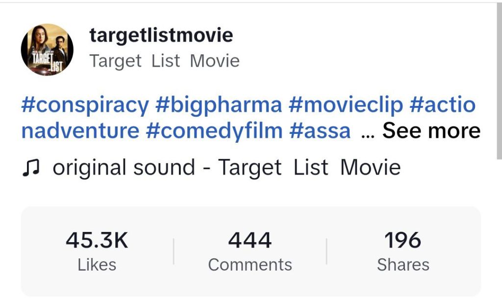 So, we put up some movie clips of our feature film, Target List on TikTok in May 2023, shortly after the title was released worldwide.