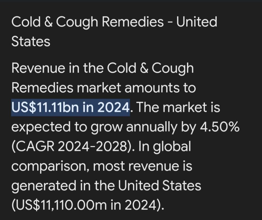 How much money do you think America’s 50,000 drugstores are taking in yearly in the way of cold and flu management drugs? The answer is over 11 billion dollars annually or nearly 1 billion dollars every month.
