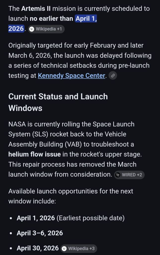 Meanwhile, in other astro(not) news, the Artemis 2 mission is delayed until April Fools’ Day! 🤣