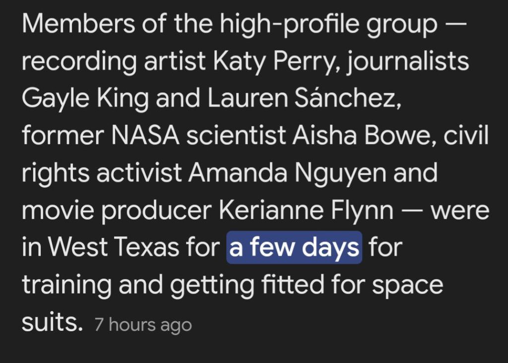 I have included some screenshots below of the answers I received from Internet AI Overview regarding the Blue Origin mission of April 14th: