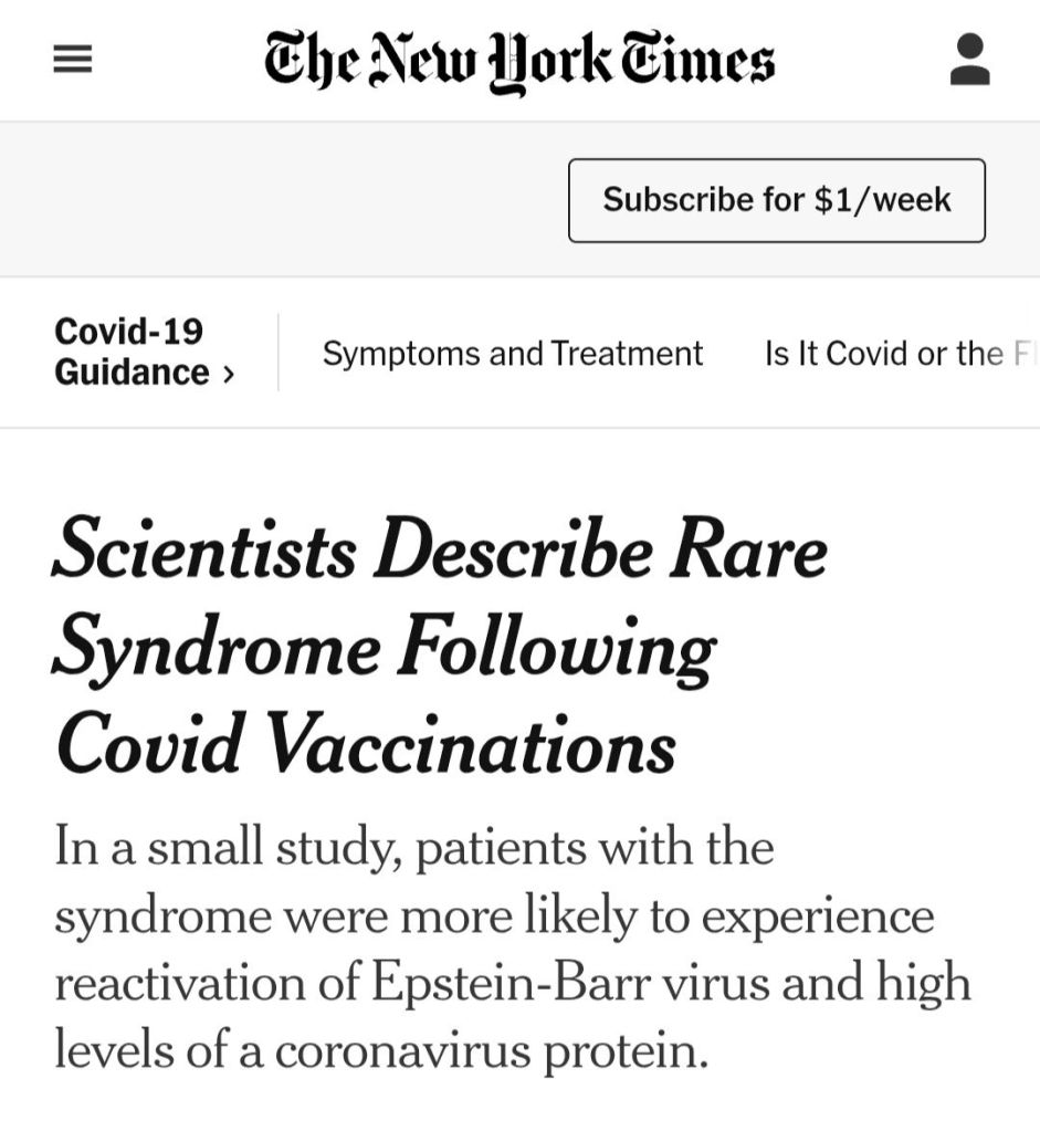 The above article recently appeared in The New York Times and is a testament to how the truth about the dangers associated with the COVID-19 vaccines is being censored and ignored by the presstitutes claiming to be independent journalists.