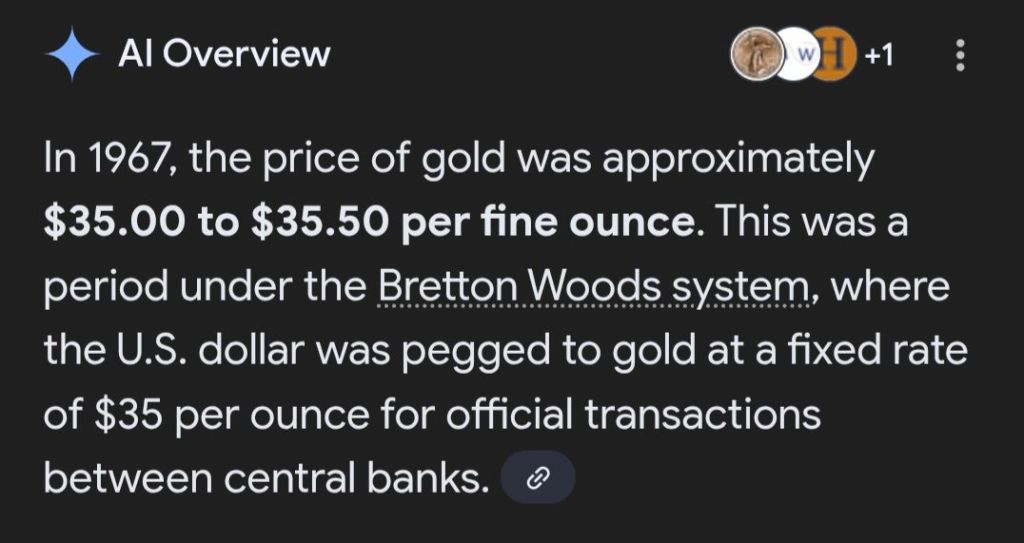 The Cost of Gold per Ounce Today Versus 1967
