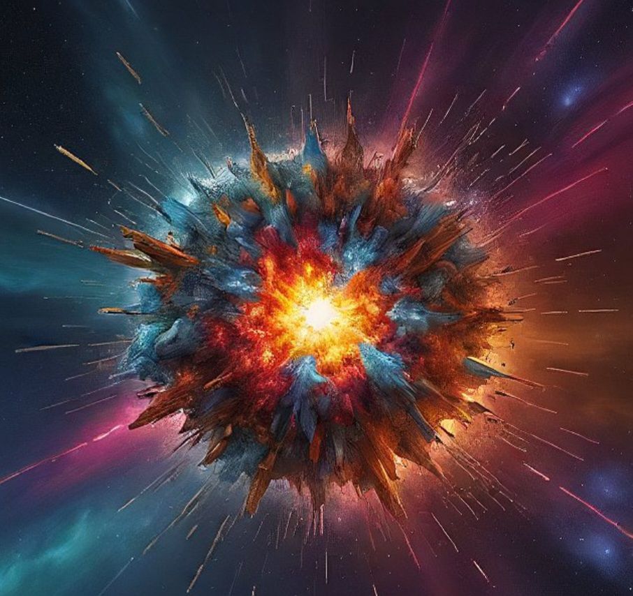 Q: How does the remnant debris of a giant explosion create intelligently organized matter that turns into planets and life forms?
